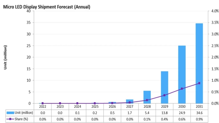 出所)Micro LED display market to reach 34.6 million units by 2031 reports Omdia